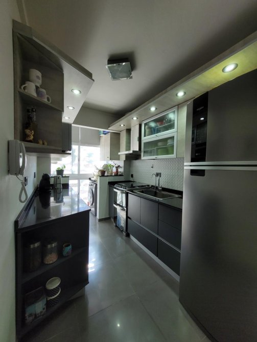 - Hermosa cocina con muebles de alacena y bajomesada combinados con vidrio completos. Horno y cocina a gas. Bacha de acero inoxidable.