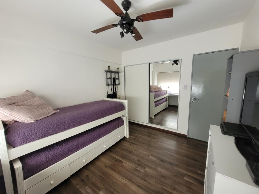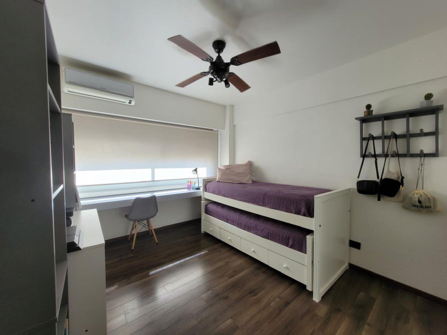 - Dormitorio secundario: Aire acondicionado frío calor. Ventilador de techo. Ventana línea Modena. Placard con puertas corredizas espejadas e interiores completos.
