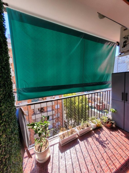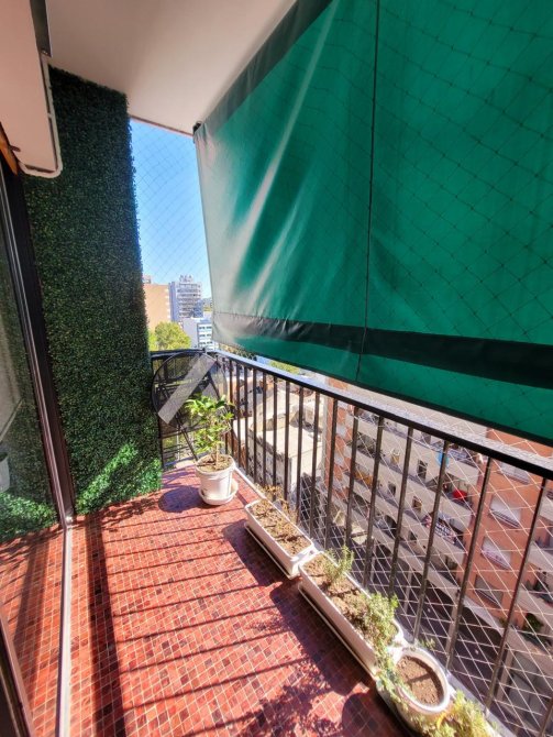 - Balcón con pisos cerámicos y cerramiento de red.