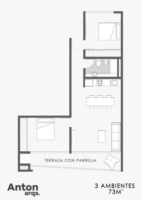 El departamento cuenta con living-comedor, cocina, terraza al frente con parrilla y habitación con placar.