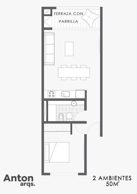 Departamento de 2 ambientes en construcción de 50mts2.