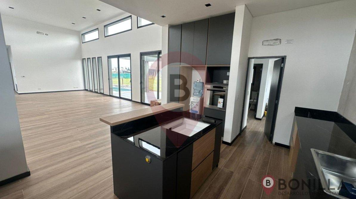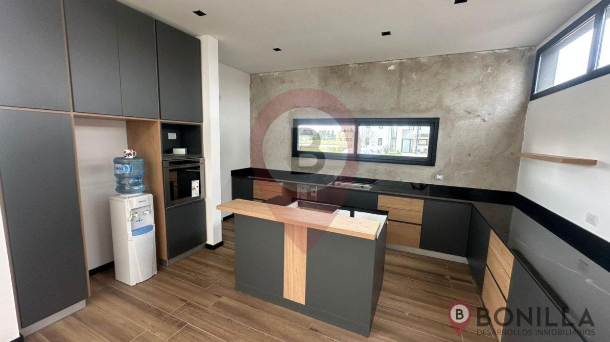 - Cocina con amplia barra, muebles bajo mesada y alacena, barra con desayunador