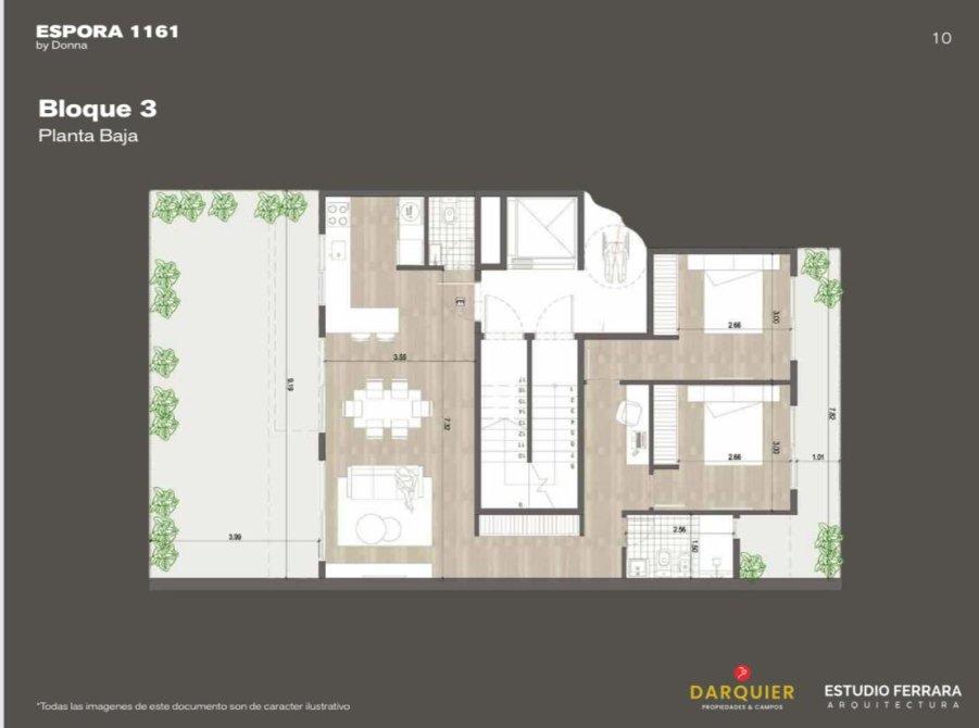 • Porcelanato símil madera en pisos de todos los locales: living-comedor, cocina, baño y dormitorio.