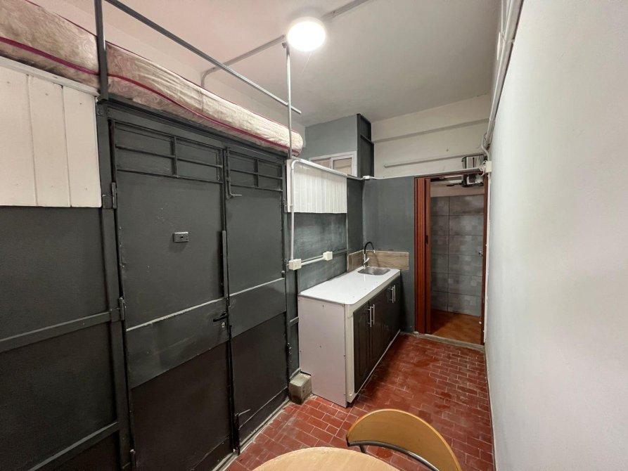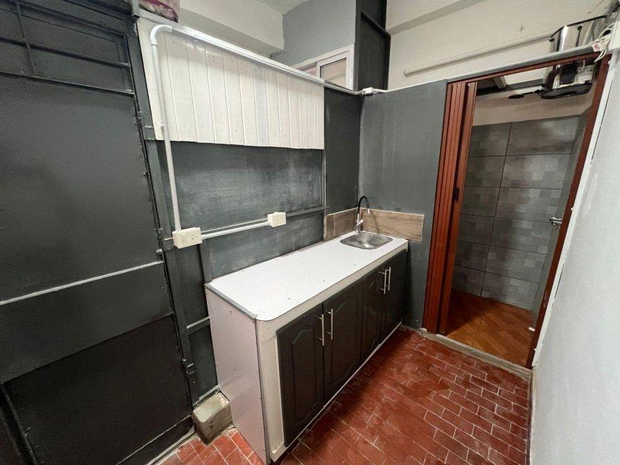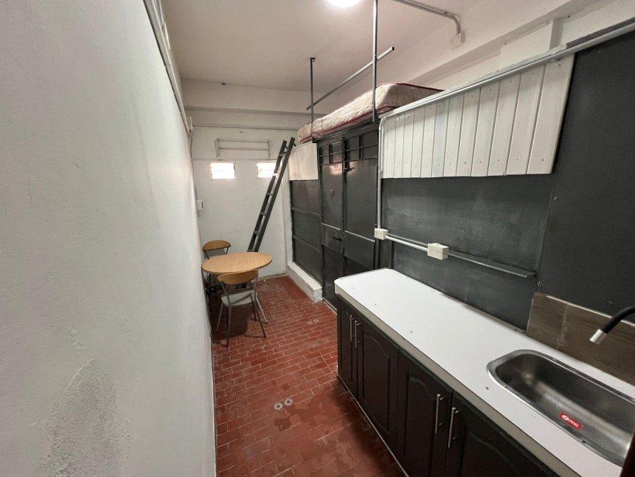 El departamento monoambiente con cocina, un baño y un entrepiso ideal para realizarlo de dormitorio y posee un lugar de guardado o baulera.  El departamento no posee gas.