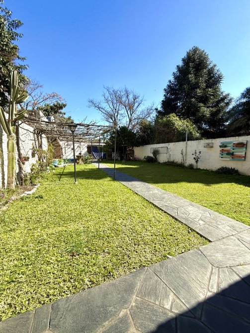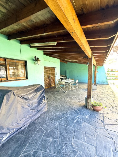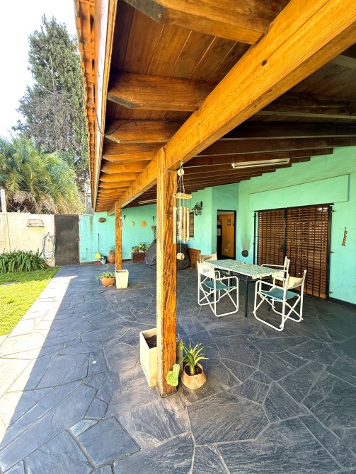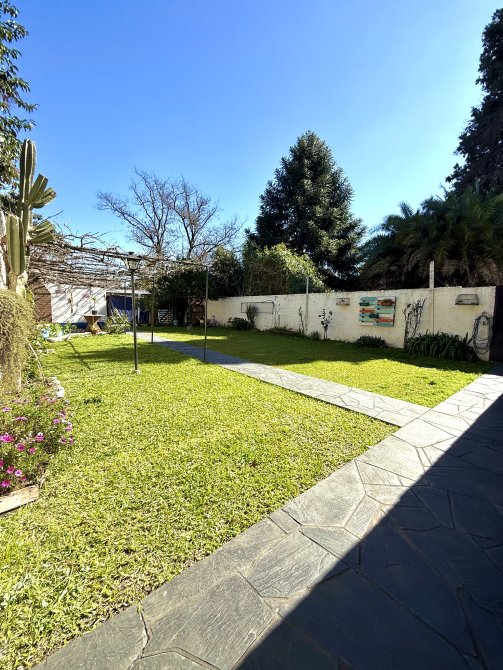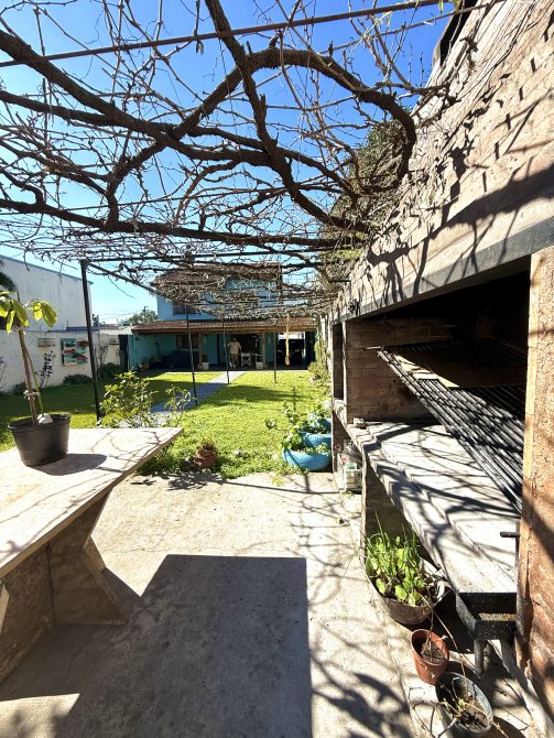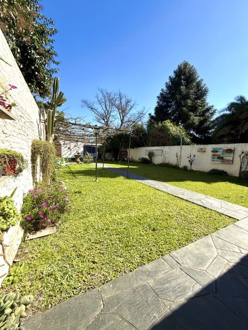 En el fondo, la propiedad se conecta con una galería abierta con piso de laja negra ilustrada, un jardín parquizado, y un sector con parrilla, horno de barro y cuarto de enseres, que transforman el espacio en un verdadero lugar de encuentro y disfrute. Además, dispone de un área que puede funcionar como quincho abierto, ideal para reuniones familiares y sociales.