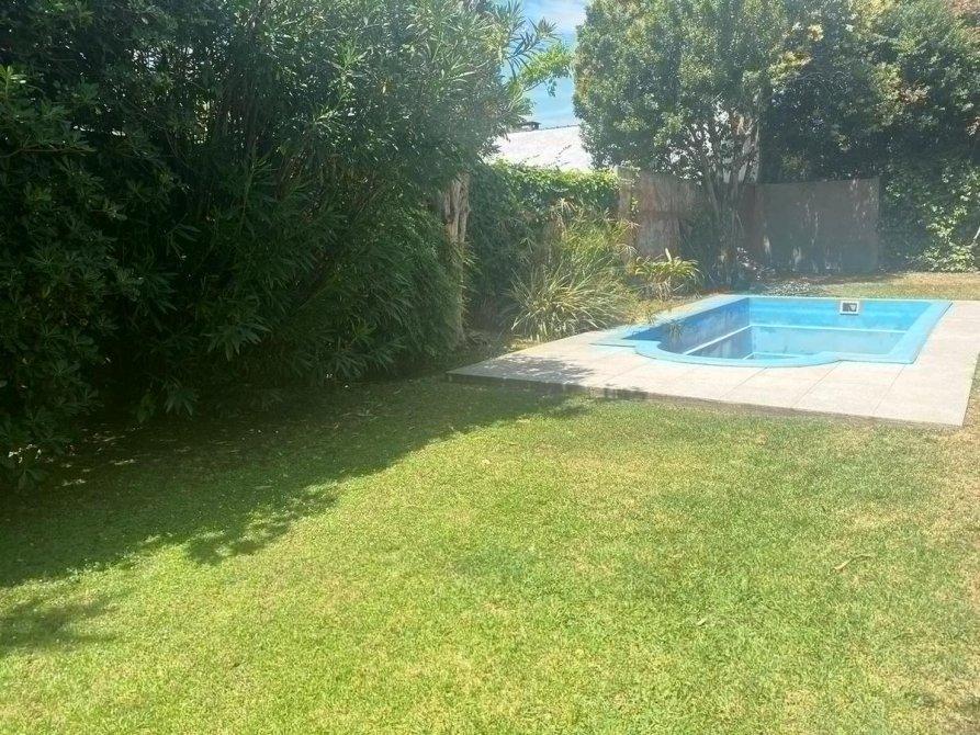 Hacia el fondo quincho con parrilla, lavadero, dependencia o cuarto utilero, baño exterior con ducha, amplio fondo libre parquizado con piscina de fibra.
