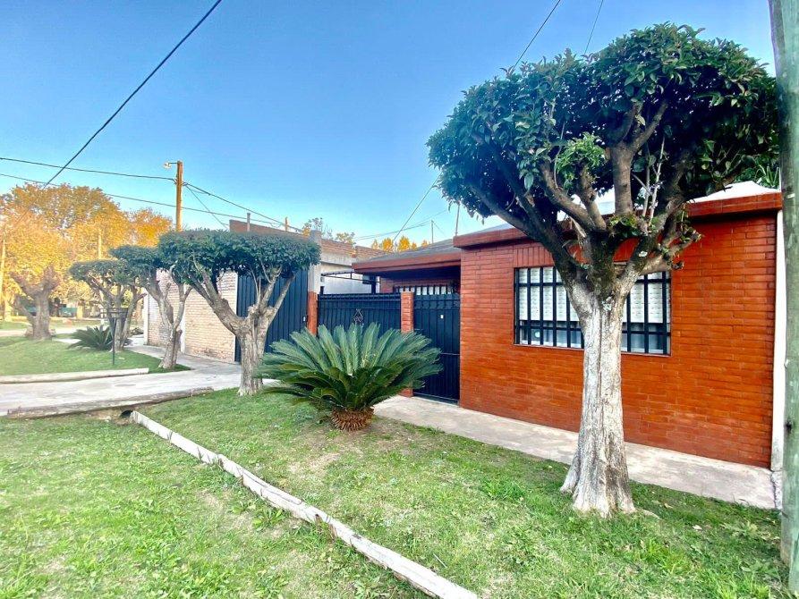 La casa tiene; 2 dormitorios con placard, cocina comedor completa con muebles sobre y bajo mesa, amplio living comedor, baño completo, patio al frente y patio lateral, entrada de auto con portón corredizo y cochera cubierta, lavadero, parrilla,