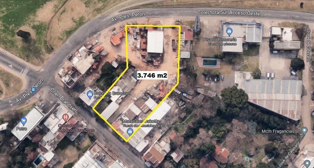 Con frente a la calle AV. PRESIDENTE PERÓN esquina CORONEL BRANDSEN, bajada kilómetro 28, próximo a Puente QUINTANA y BUEN AYRE.