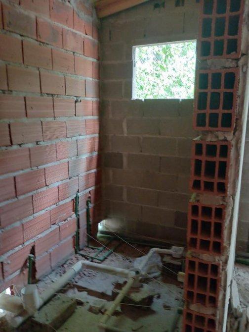 Al frente un local con baños, preparado para dividirlos y en la planta alta 2 departamentos de 2 ambientes cada uno a terminar (uno con un faltante del 30% y el otro del 70%).