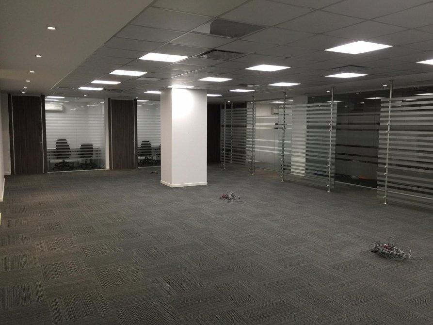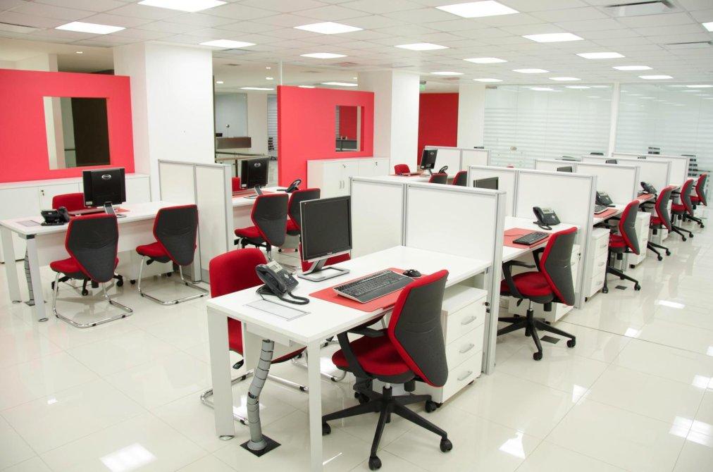 PRIMER PISO: FRENTE BLINDADO - RECEPCION - SALON PARA OCHENTA ESCRITORIOS - 11 OFICINAS GERENCIALES - 1 OFICINA PRESIDENCIAL CON BAÑO COMPLETO - SALON DE REUNIONES - SALON DE PROYECCIONES - BAÑOS GENERALES - BAÑOS PARA PERSONAL - COCINA - DETALLES DE CATEGORIA - EQUIPAMIENTO COMPLETO DE AIRES ACONDICIONADOS DAIKIN (JAPON) 5 CENTRALES 20 INDIVIDUALES Y 2 PARA COLOCAR - SISTEMAS DE CORTINAS AUTOMATIZADAS