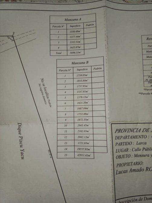 Importante lote en venta frente al Dique Piscu Yaco – 1.500 m²
