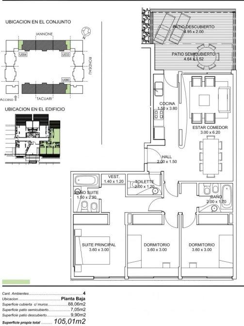 Superficie total 105m2
