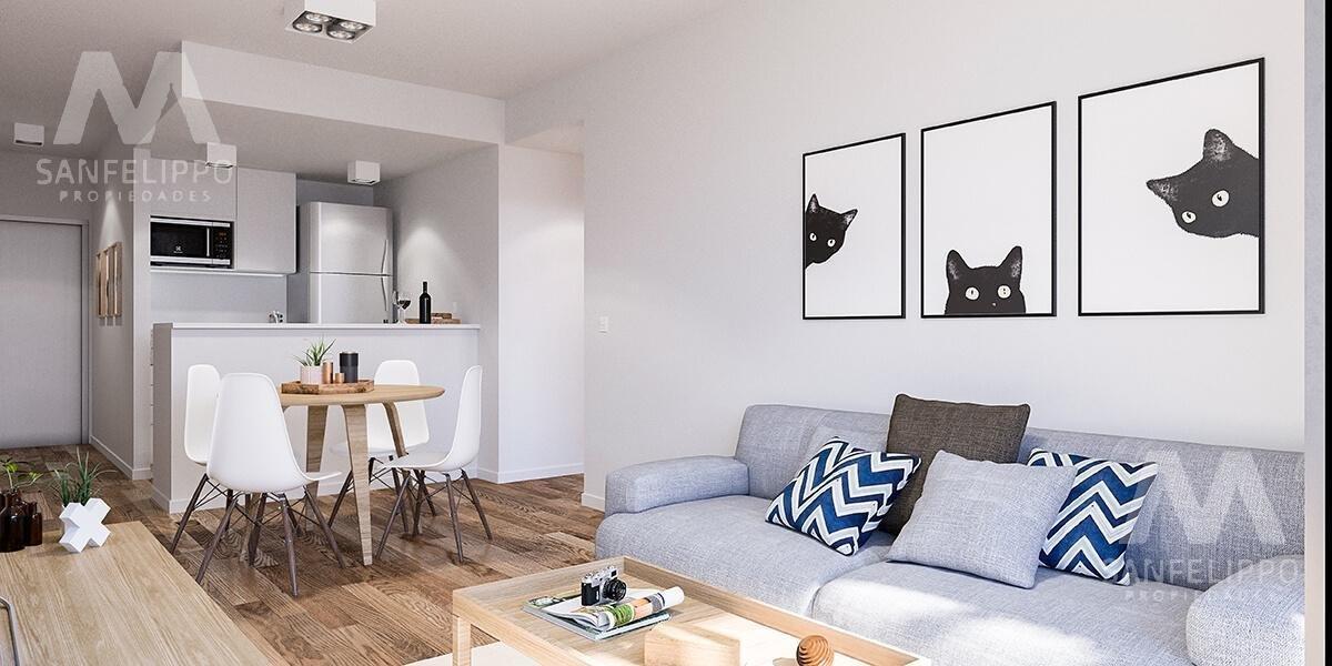 Unidad de 2 ambientes compuesta por living comedor con cocina integrada, dormitorio independiente, baño completo y balcón.