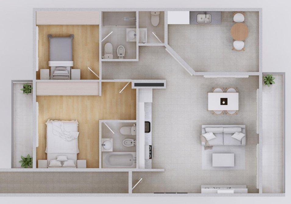 -Departamento de 2 ambientes de 59 m2.