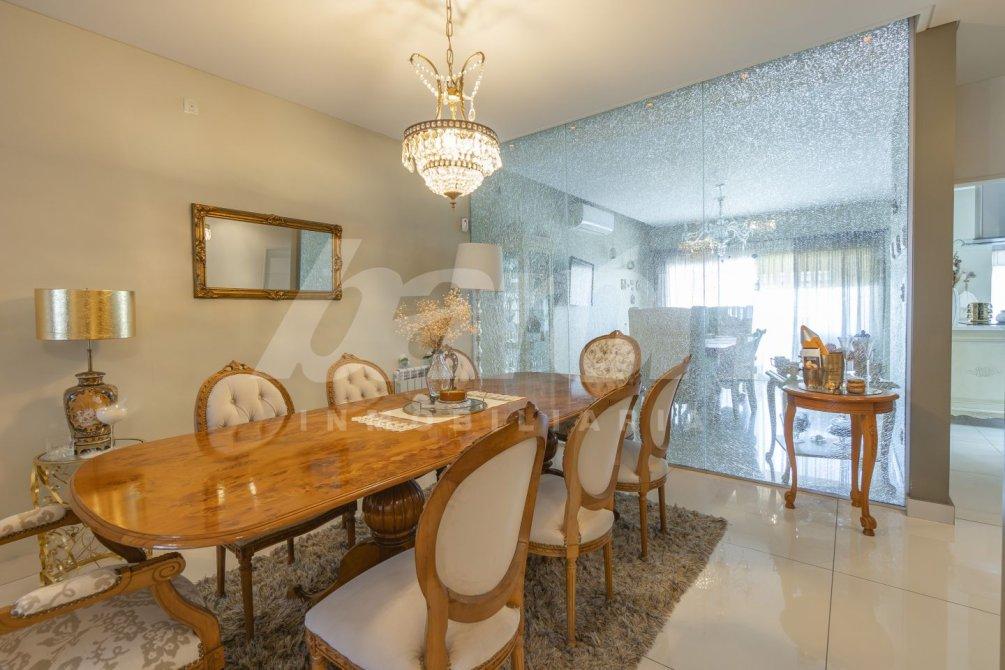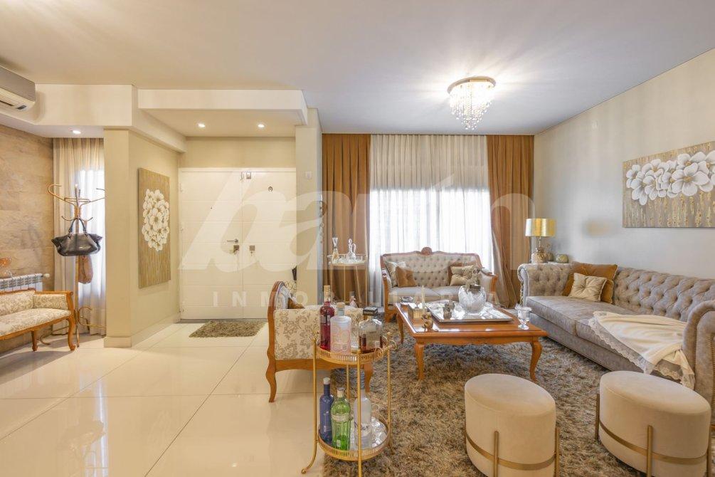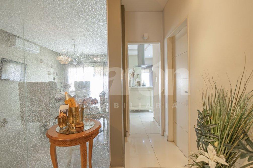 Al acceder a la vivienda, una puerta blindada conduce a un amplio y confortable living que conecta mediante un pasillo distribuidor con un toilette de recepción y un comedor diario con cocina integrada.