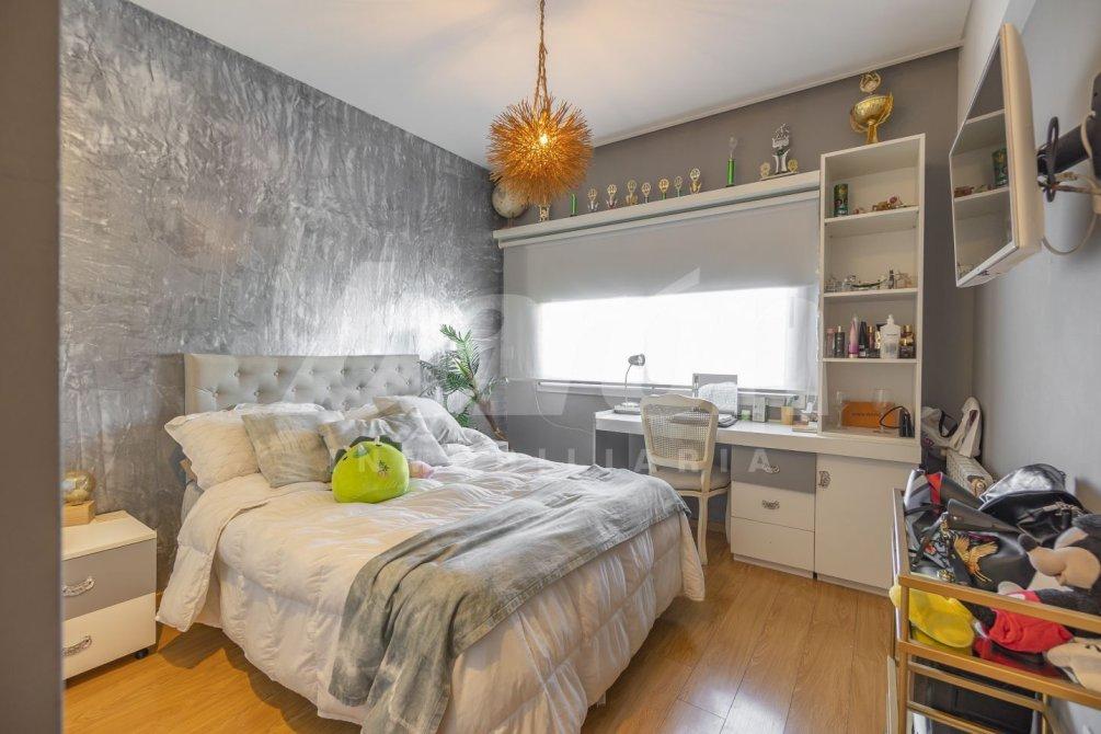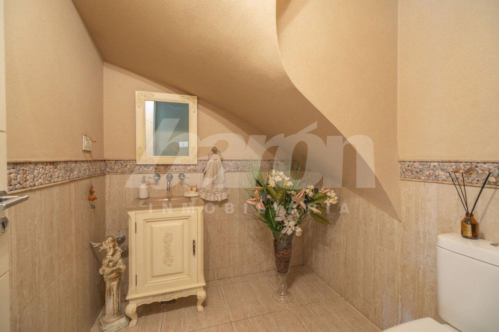 En la planta alta, al finalizar la escalera, se ubica un práctico espacio de guardado tipo baulera. Desde allí se accede a cuatro habitaciones y  a un baño completo con antebaño.