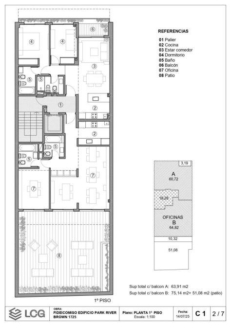 Unidad 02-01 piso segundo al frente con balcón, dos ba?os y cocina integrada al estar comedor. Isla con bacha, mesada con anafe, horno empotrado.