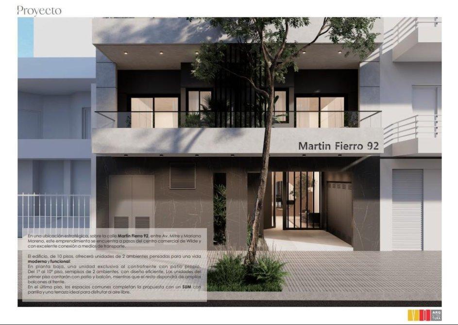 Emprendimiento en construcción ubicado en un punto estratégico de Wilde, muy cerca del centro comercial y con rápidos accesos a diferentes líneas de transporte.
