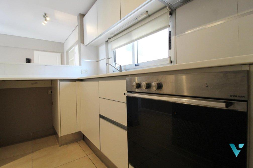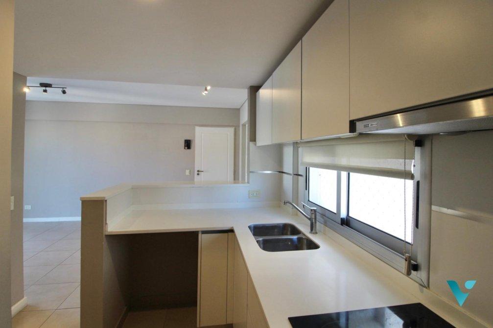 Cocina integrada: equipada con mobiliario moderno, desayunador y espacio previsto para lavarropas o lavavajillas.