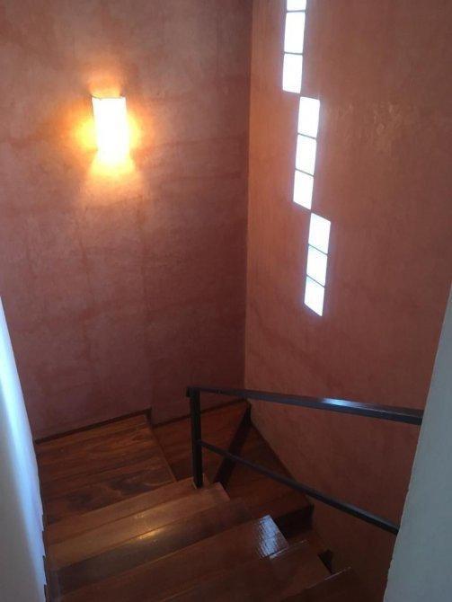 Escalera revestida en madera.