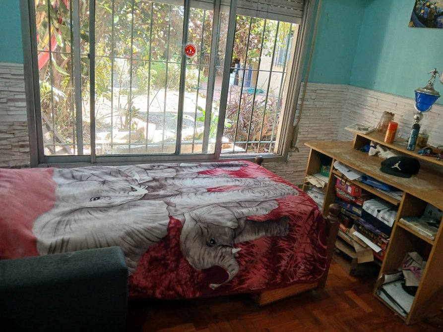 Muy amplio tercer dormitorio de 5 x 2, con amplias dos ventanas de hojas corredizas y reja de seguridad, con entrada independiente desde la calle mediante corredor de 4,70 x 1, ventilado por 2 ventanas de aluminio de doble hoja y ladrillos transparentes que dan luz y deco, que oficia de entrada independiente.