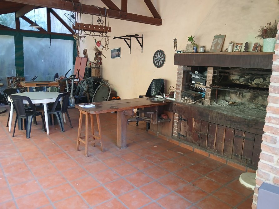 Parque de 17 x 7,70, todo verde y quincho cubierto de alero de tejas, en decoración rústica con parrilla con campana al exterior, pileta de lavar y desayunador, espacio para heladera. Piso cerámico rústico de quincho. Baño en quincho de 2,26 x 1,25 completo.