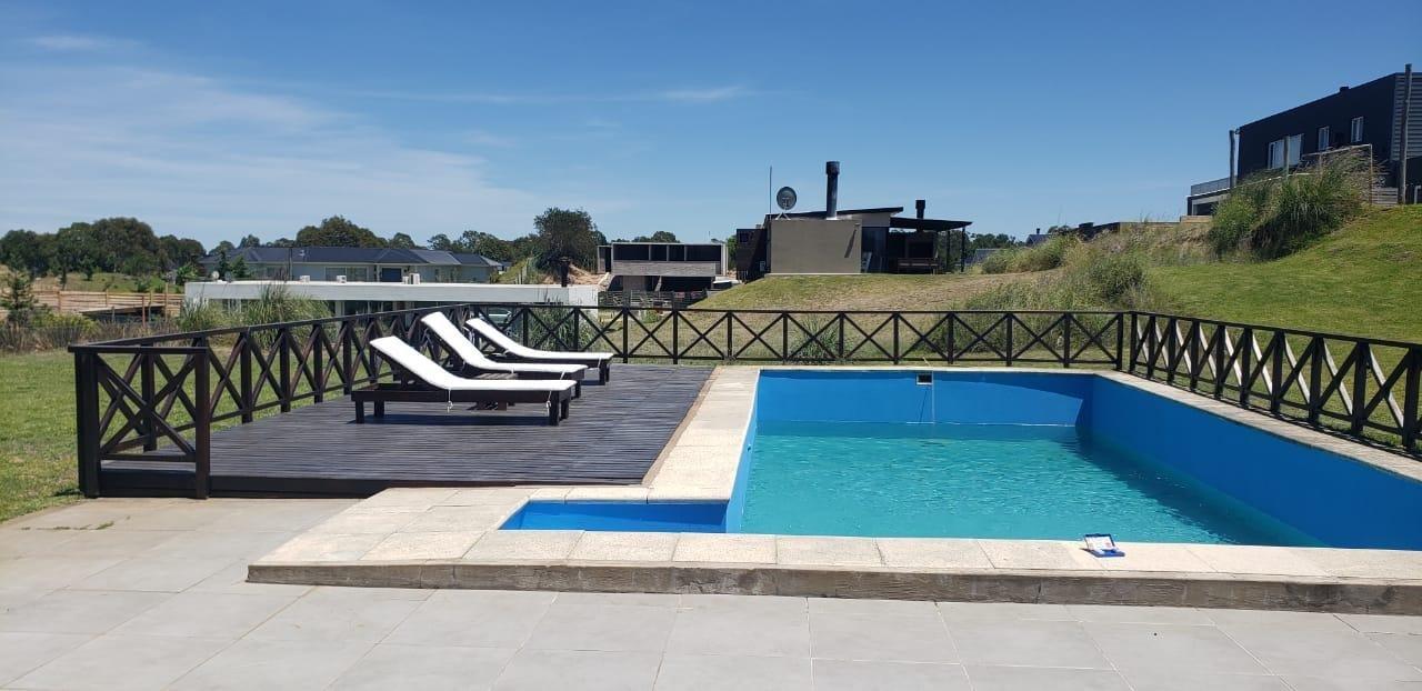 Piscina con deck elevado y solarium