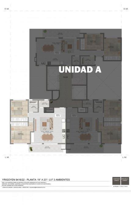 Unidad tres ambientes ubicada en el piso 23ºA  al frente  de 75 m2 + balcón en el edificio Barón Avenue. Se encuentra sobre Avenida Hipólito Yrigoyen 9416, en un punto estratégico que asegura la mejor conectividad y acceso a todo lo que el entorno tiene para ofrecer.