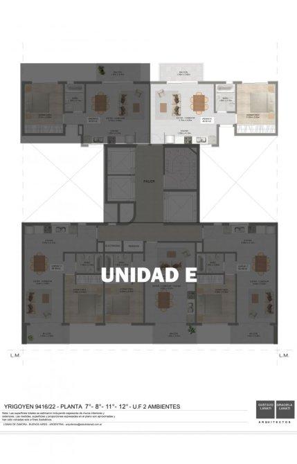 Unidad dos ambientes ubicada en el piso 7º E al contra frente de 46.50 m2 + balcón en el edificio Barón Avenue. Se encuentra sobre Avenida Hipólito Yrigoyen 9416, en un punto estratégico que asegura la mejor conectividad y acceso a todo lo que el entorno tiene para ofrecer.