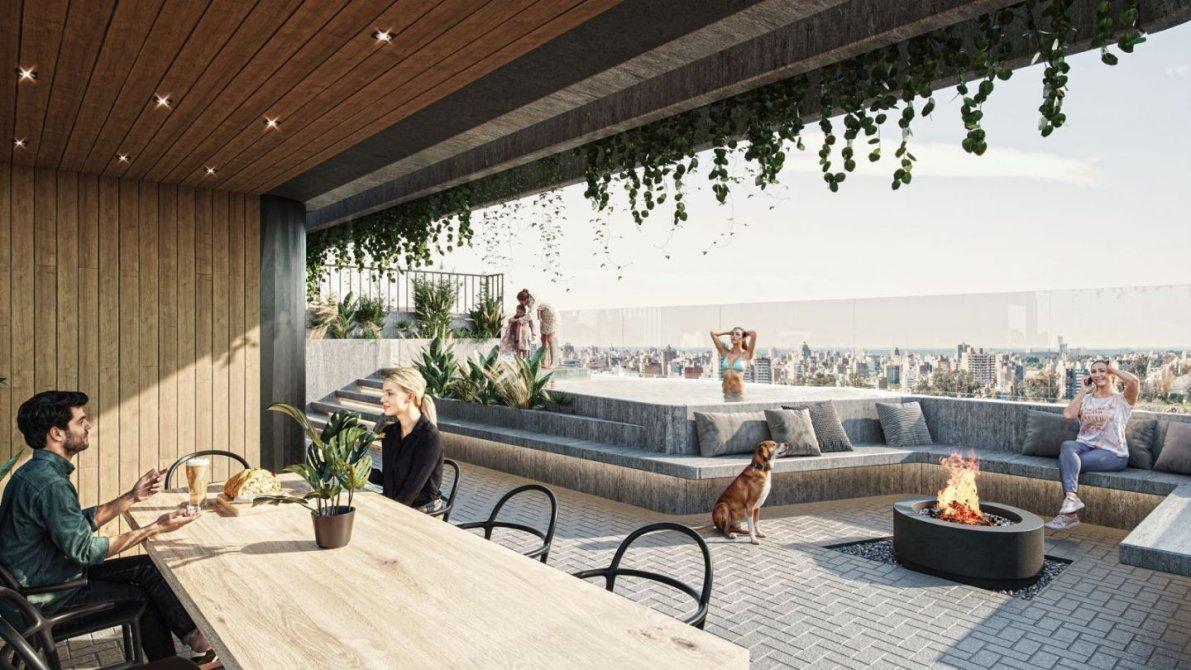 Amenities premium: Piscina, solarium, quincho con parrillero amueblado, gimnasio, living fogonero.