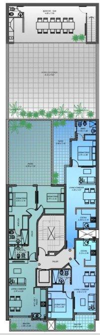 Ubicado en calle Moreno al 500, entre Urquiza y San Lorenzo, se ubica este edificio que consta de la planta baja y 10 pisos con 3 unidades por planta, de 1 y 2 dormitorios de excelente calidad constructiva y terminaciones.