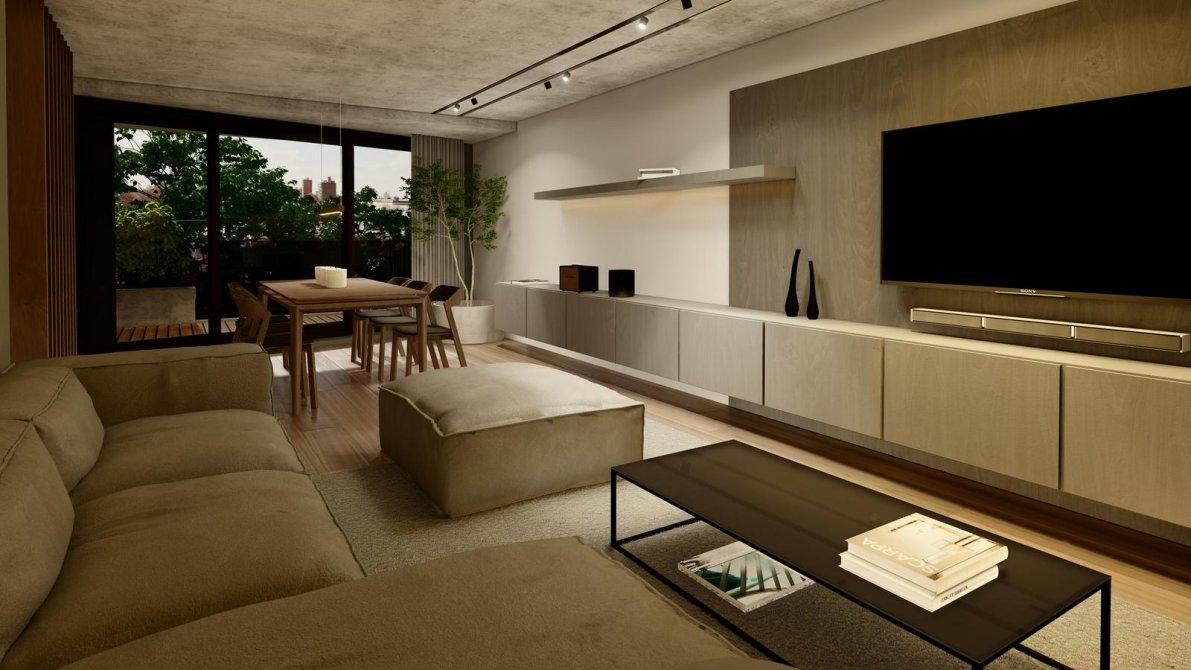 Aberturas de aluminio de alta prestación, de piso a techo, con DVH – Pisos y revestimientos de porcellanato. – Anafes y hornos eléctricos primera marca – Sanitarios primera marca – Griferías monocomando primera marca. – Amoblamiento completo de cocina. – Mesadas de granito. – Placares de madera con frentes corredizos de aluminio. – Interior de placares en melamina (opcional) – Puertas interiores de madera.