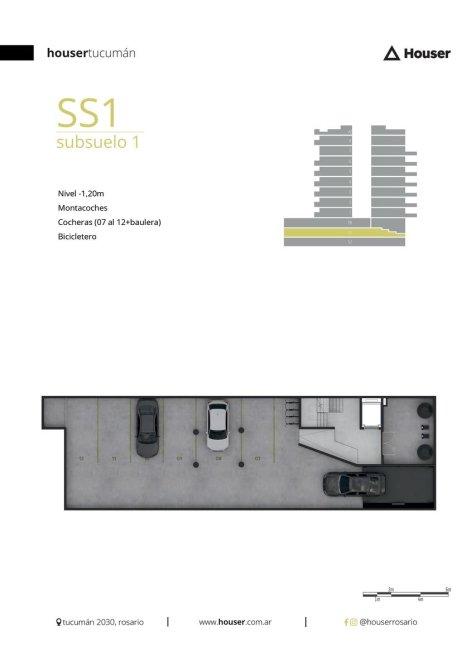 -Estacionamiento para bicicletas, autos y camionetas en subsuelos, con porton a control remoto.