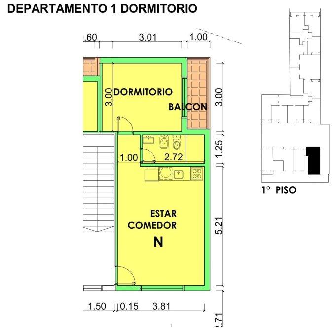 El estar-comedor cuenta con balcón y vista al frente este y baño completo.