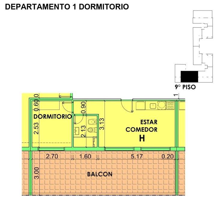 La unidad contara con pisos de porcelanato símil madera en cocina y baños; en el balcón tendrá cerámicos esmaltados para exteriores. La puerta balcón será corrediza de aluminio blanca con persianas de PVC estilo Módena.