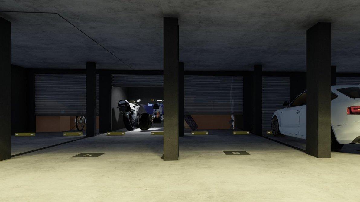 Cocheras con ingreso remoto desde la calle por rampa en pendiente a niveles de subsuelos. Bauleras opcionales.