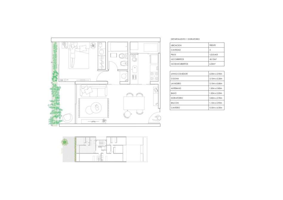 El parapeto del balcon se materializa con un cantero sumando un espacio verde y naturaleza.