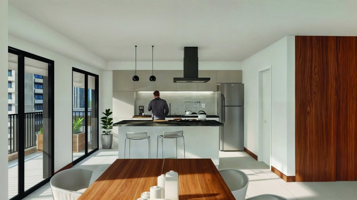 Edificio residencial de diseño moderno y estilo minimalista, que utiliza materiales locales, con una estructura de 6 plantas. Consta de 16 unidades de un dormitorio, un piso exclusivo de 3 dormitorios, un consultorio/departamento en planta baja y un local comercial al frente.