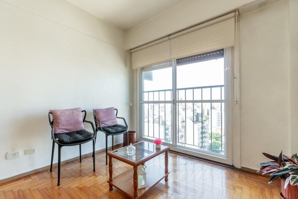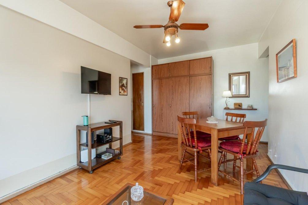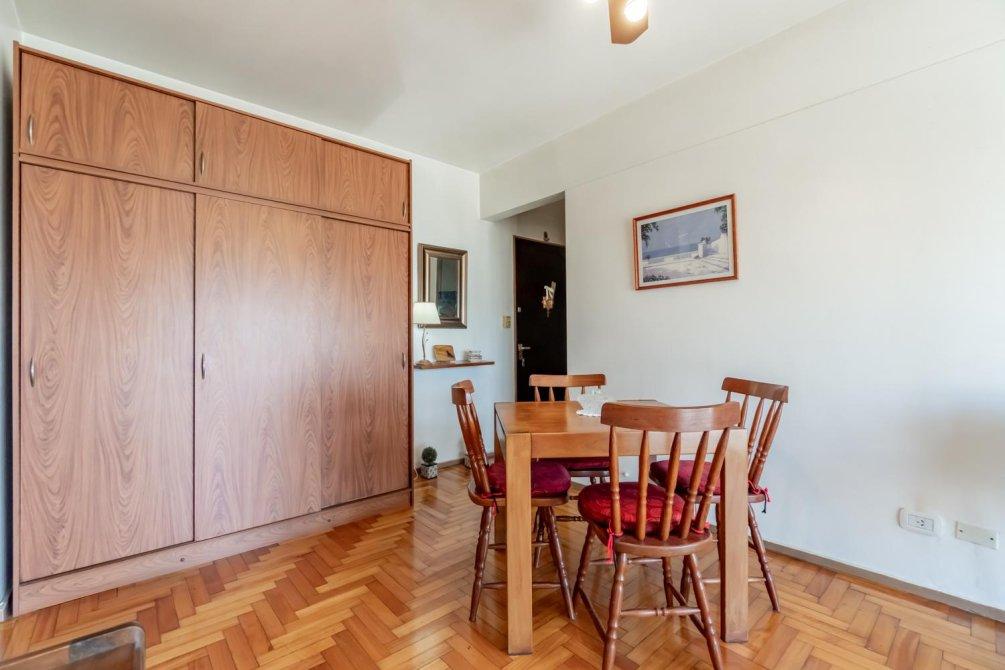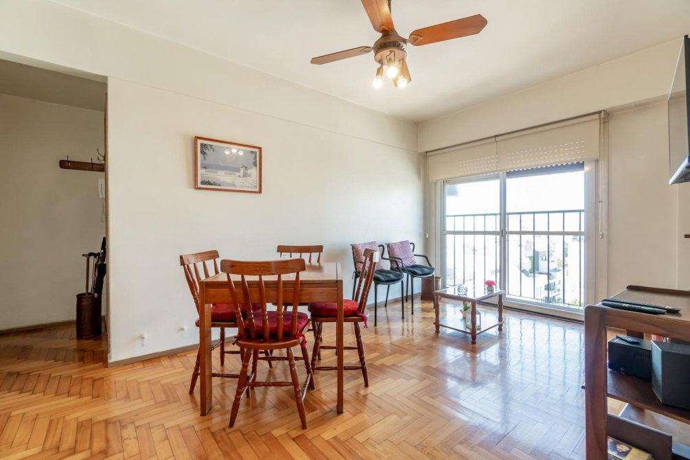 Departamento de 2 ambientes en la mejor zona de Flores Norte.Living comedor con piso de parquet en excelente estado, ventana piso techo con balcón francés y vista panorámica; muy luminoso.