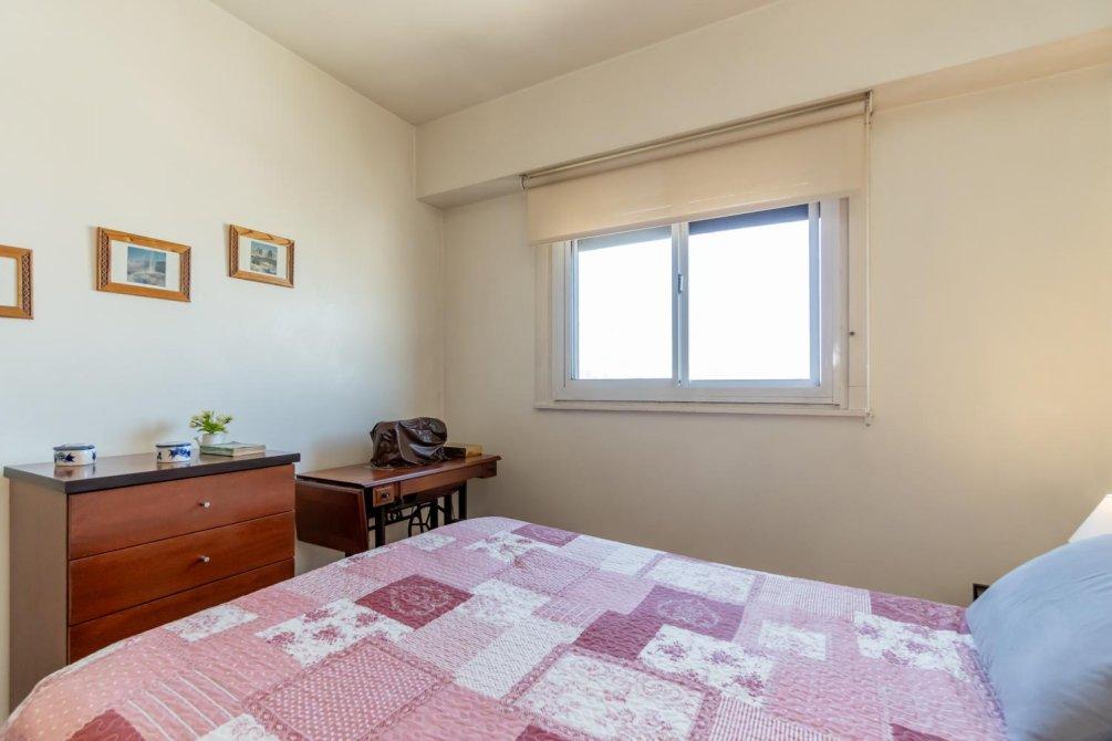 Dormitorio con piso de parquet, placard empotrado con buen espacio de guardado; misma vista panorámica que el living.
