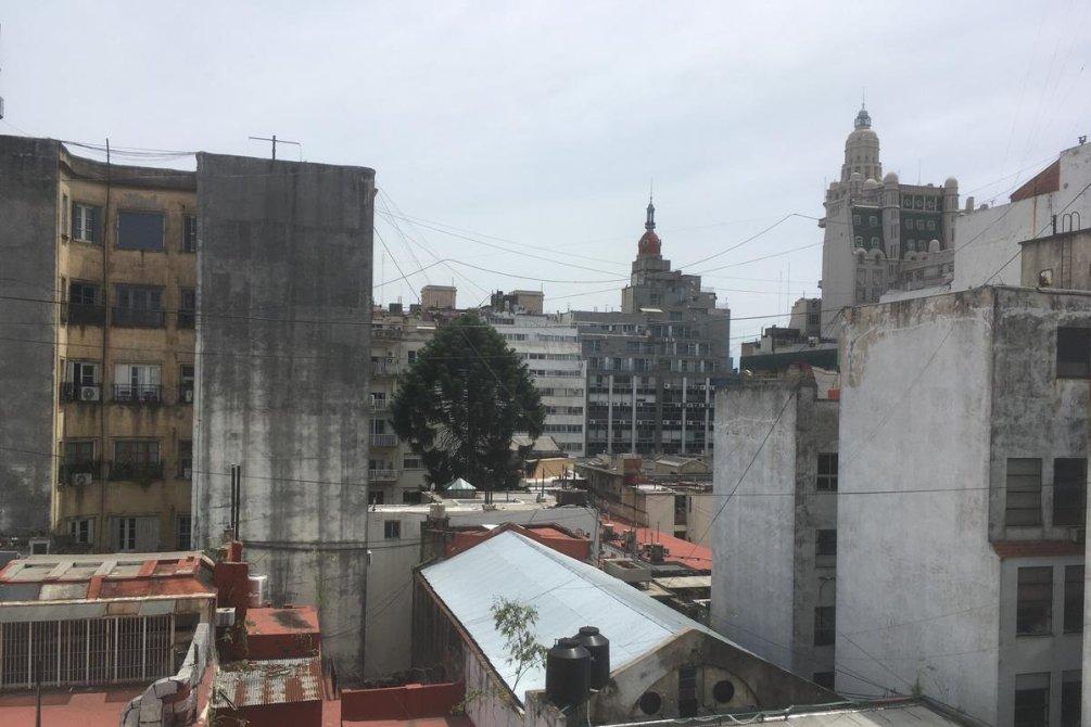 Todo el ventanal da al frente del edificio en un piso 7mo, actualmente esta sin el despacho que estaba en el medio.