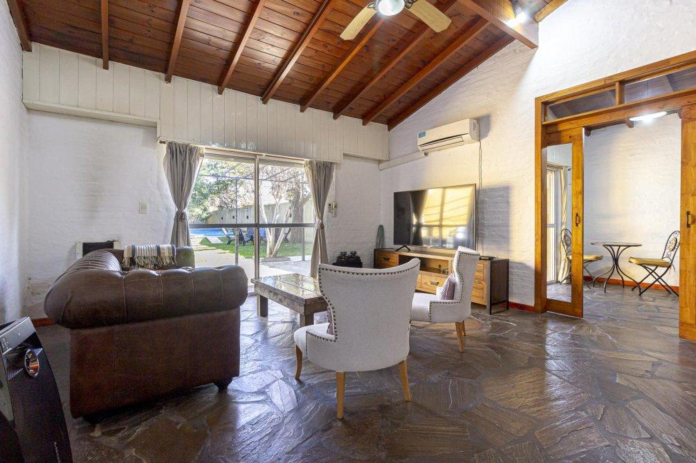 Hall de ingreso que da paso a un luminoso living comedor con hogar a leña y aire acondicionado frío-calor, perfecto para los días de frío y calor.