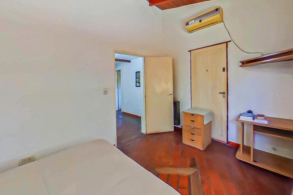 Dos dormitorios que comparten un baño completo con antebaño. Uno de los dormitorios tiene ventana hacia el frente y aire acondicionado solo frío.