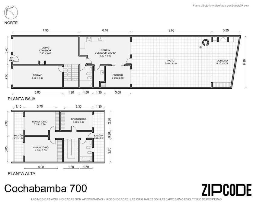 4 dormitorios: 2 con balcón al frente, 1 con balcón terraza al contrafrente y 1 en planta baja con salida a patio.