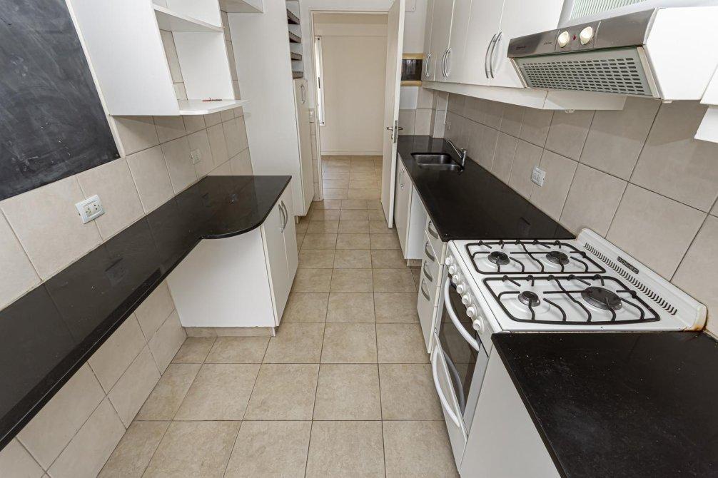 * Cocina con muebles de alto y bajo mesada. Espacio para lavavajillas y lavarropas.