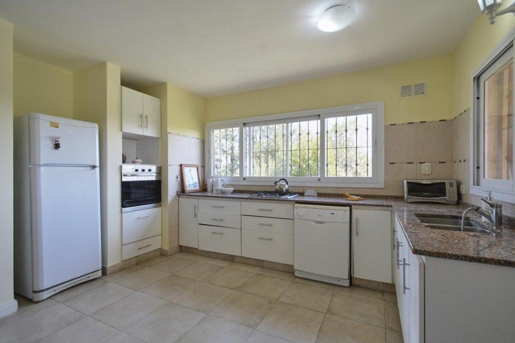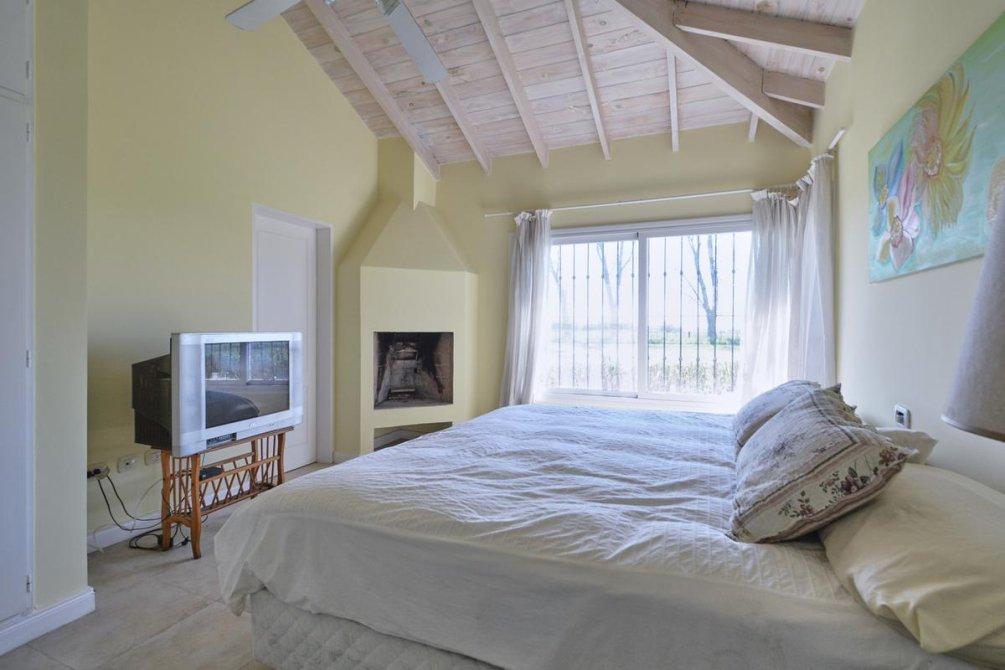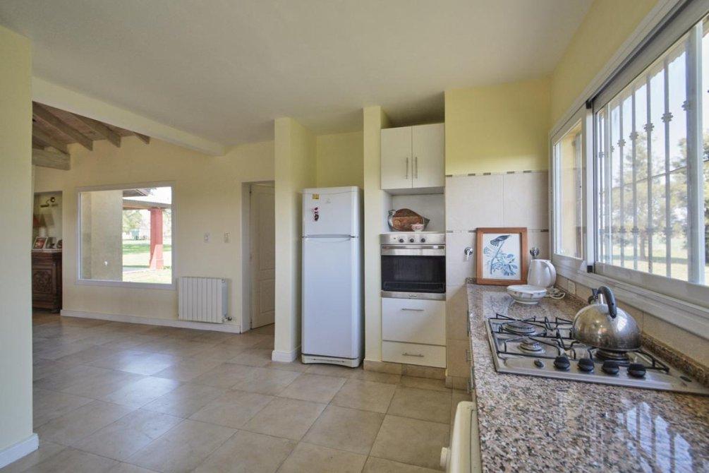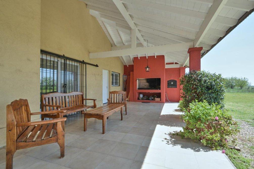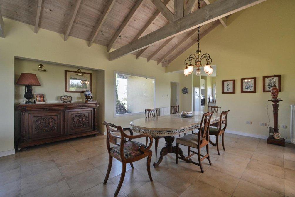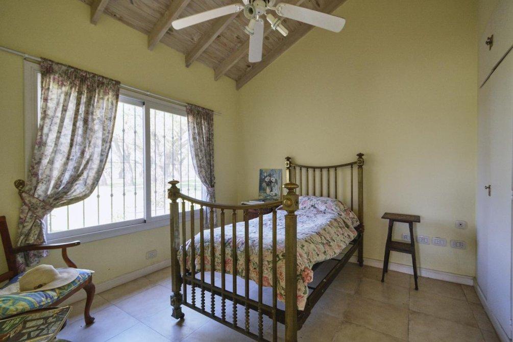La casa principal, con una superficie de 259 m2, está rodeada por un lindísimo parque arbolado y una piscina. Dispone de una galería de recepción y otra con vistas a la piscina, equipadas con una espaciosa parrilla y un horno a leña. En el interior, la casa cuenta con tres dormitorios de generosas dimensiones, uno de ellos en suite y con chimenea. También ofrece una amplia sala de estar con otra chimenea, una cocina espaciosa y un lavadero independiente. El baño principal está compartimentado y todas las ventanas cuentan con rejas coloniales.