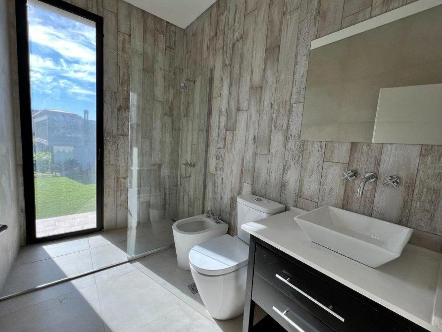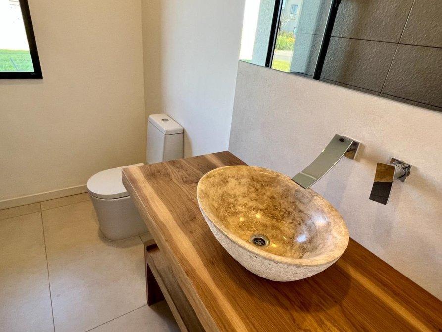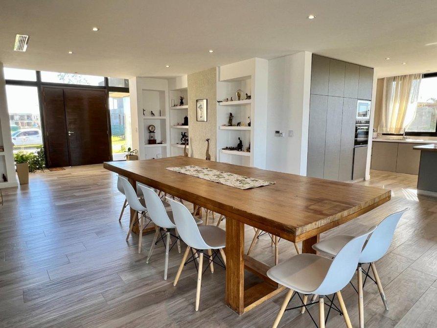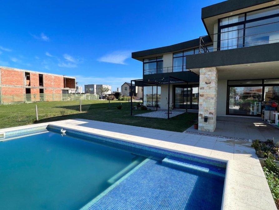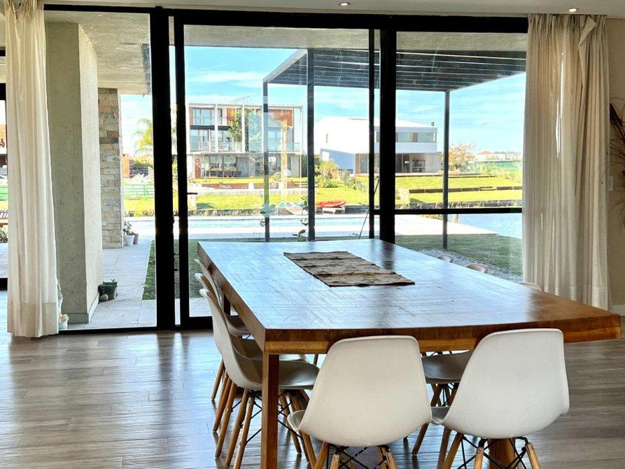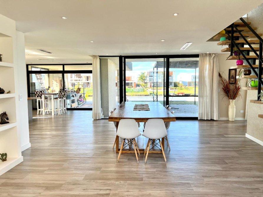 Ubicada en el exclusivo Barrio Marinas, en Puertos del Lago, esta impresionante propiedad ofrece una excelente orientación y un diseño moderno. Con una estructura de hormigón y revestimientos en tonos cálidos, destaca por sus detalles de piedra a la vista, amplios espacios y abundante iluminación natural.