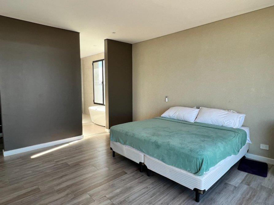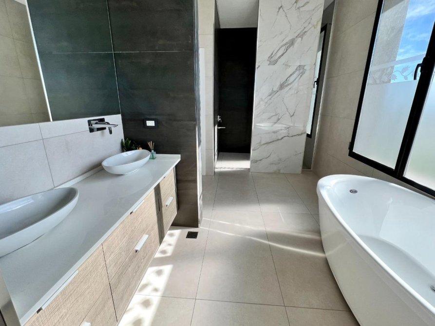 La master suite incluye un amplio vestidor y un baño con jacuzzi y ducha doble.