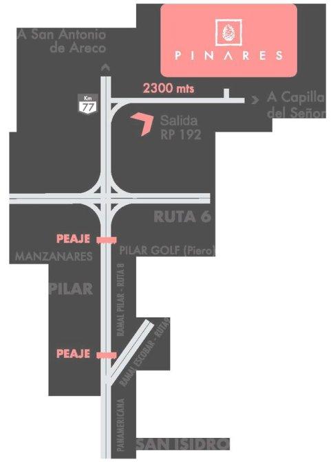Pinares está ubicado a menos de una hora del centro de Buenos Aires y a menos de 15 minutos del centro de Pilar. Continuando por RN8 desde el ramal Pilar de la Panamericana, en el km77 tomar la salida de RP192 hacia Capilla del Señor. A 2km se encuentra Pinares. Los alrededores se caracterizan por paisajes típicamente rurales, con campos productivos, grandes extensiones de verde y añosas arboledas.