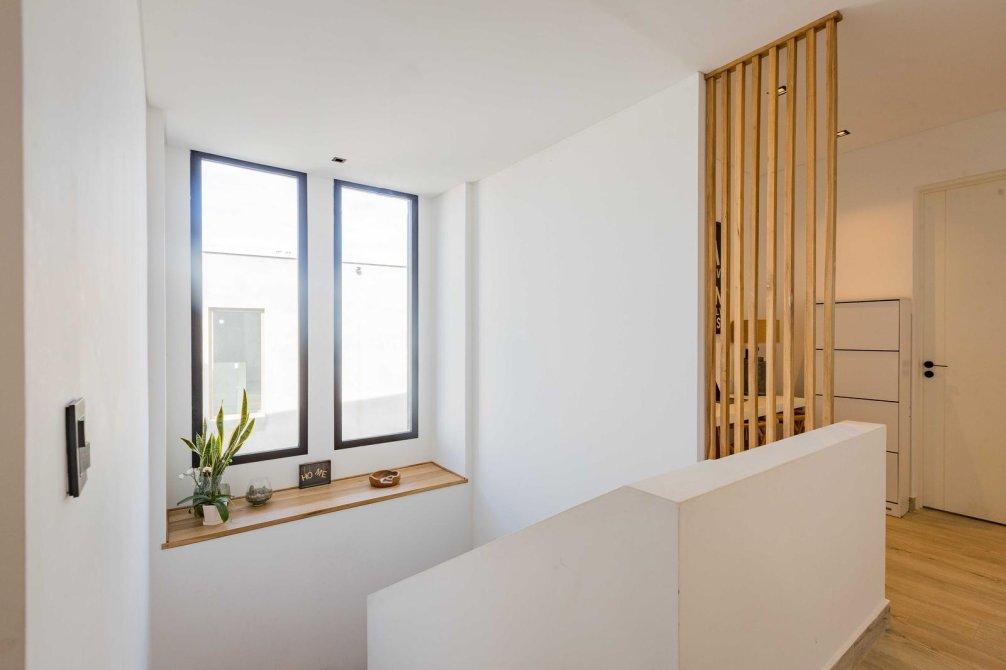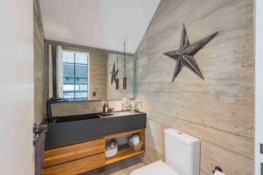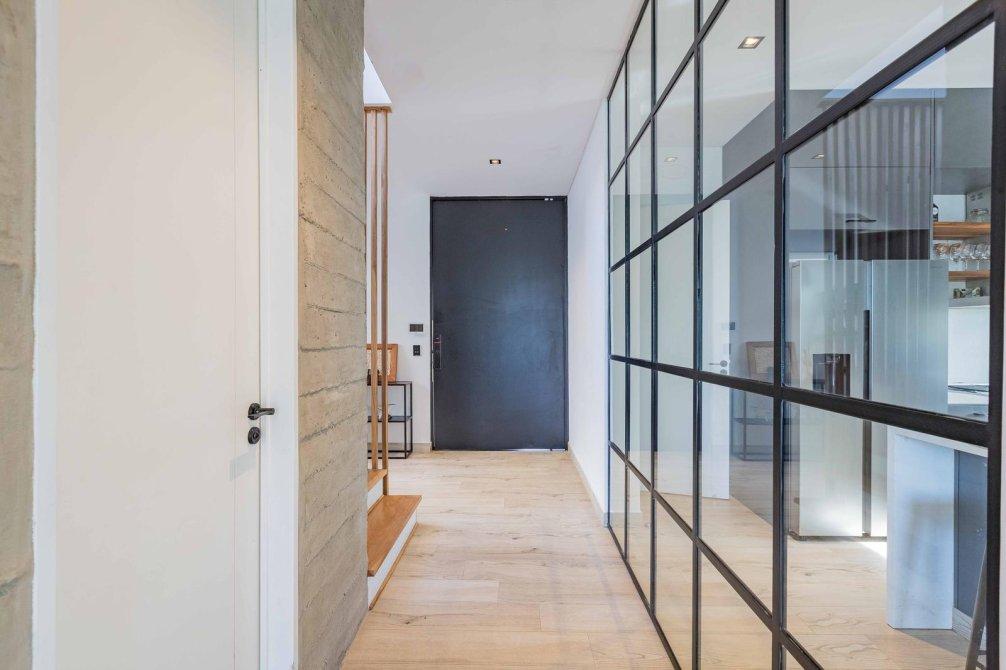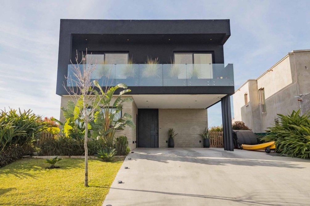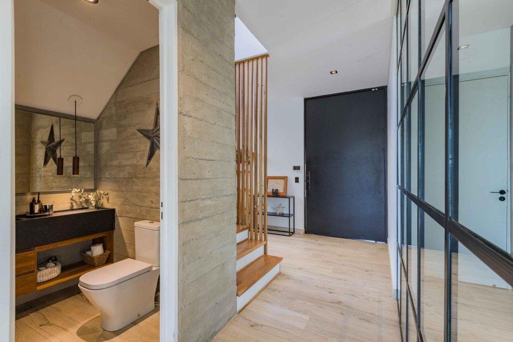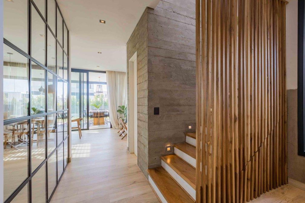 Casa de estilo moderno con hormigón visto, desarrollada en dos plantas sobre lote interno de 524 m2. Orientación NE.